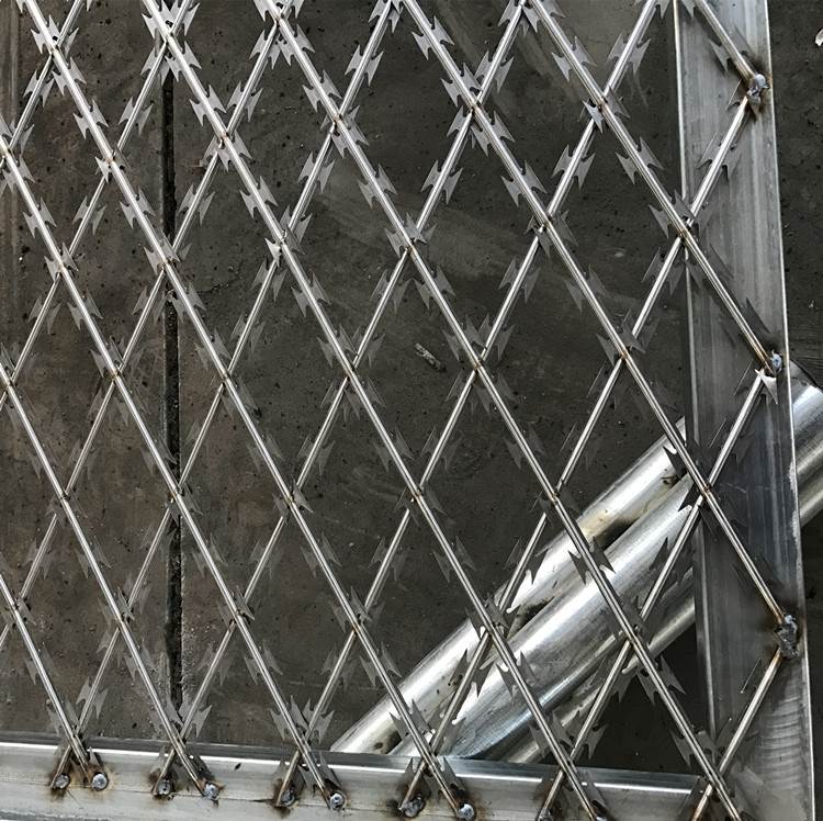 監(jiān)獄刀片護欄網(wǎng)的特點:防腐、防老化、抗曬、耐候等特點。螺旋型交叉刀片刺網(wǎng)是在兩條刀片刺網(wǎng)之間以不銹鋼片和鍍鋅鋼片強力夾扣,展開后即呈交叉狀,美觀又實用。