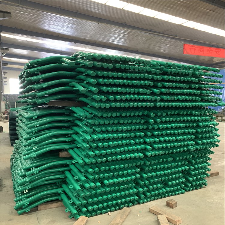 公路隔離網(wǎng)防腐處理:經(jīng)除銹、打磨、鈍化、硫化等工藝后,采用鍍塑處理,色彩為果綠色,鍍層厚度為0.6~1.6mm,鍍粉采用抗老化性能較佳的進(jìn)口耐候性樹脂粉料,鍍層必須顏色一致,表面光滑,不允許有流掛、滴瘤或多余結(jié)塊。鍍件表面應(yīng)無漏鍍、露鐵等缺陷。