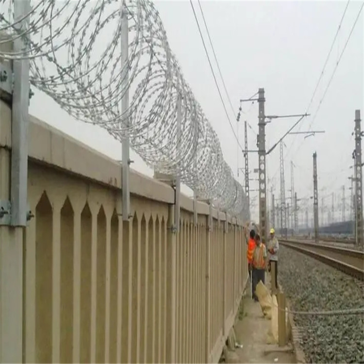 工程案例高鋅刺絲滾籠是工程鐵路隔離圍欄的配套產(chǎn)品,在工程鐵路防備隔離柵的上方加裝刺絲滾籠,是安全配套流程。刀片刺繩根據(jù)安置方法不同可歸納:(蛇腹式) 螺旋式刀片刺繩,直線型刀片刺繩,平板式刀片刺繩,刀片刺繩焊接網(wǎng)。