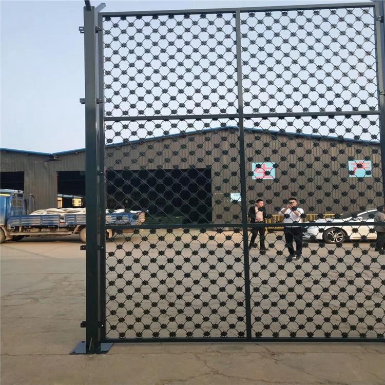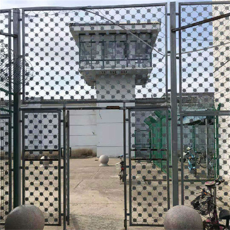 工程案例監(jiān)獄隔離網(wǎng)大門,刀片刺網(wǎng)大門,梅花刺網(wǎng)大門是非常重要的監(jiān)區(qū)安全防護設(shè)施,是由焊接鋼網(wǎng)加蛇腹形刀刺網(wǎng)組合而成。產(chǎn)品具有結(jié)構(gòu)新穎、堅固緊密、網(wǎng)面平整、網(wǎng)孔均勻、刀鋒銳利、防攀爬、耐腐蝕性強等特點。Y型架上邊架蛇腹型刀刺:由熱鍍鋅鋼板或不銹鋼薄板沖壓出尖利的刀片狀,高張力鍍鋅鋼絲或者不銹鋼絲做芯線組合而成的阻盡器材。刀刺直徑采取50或60厘米,刀型整潔、刀片鋒利排列均勻致密、連接堅固、防腐才能強,可能達到防擎越、防拆卸更高保險等級。