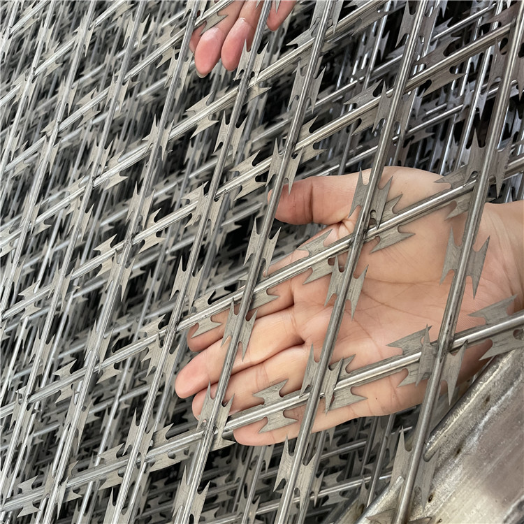 焊接型刀片刺繩網(wǎng)片是先把刀片刺繩成型之后裁成所需網(wǎng)片直條的長度經(jīng)網(wǎng)片機焊接成刀刺網(wǎng)片,孔型有長方形、正方形與菱形均可定做。材質(zhì):芯線熱鍍鋅或者不銹鋼絲;板材為熱鍍高鋅或者不銹鋼板材。也可以表面噴塑或者涂塑,以達到更好的防腐耐酸堿的作用,延長使用年限??讖酱笮。?X10、7.5x15cm(其他網(wǎng)孔可以根據(jù)客戶需求定做)。
