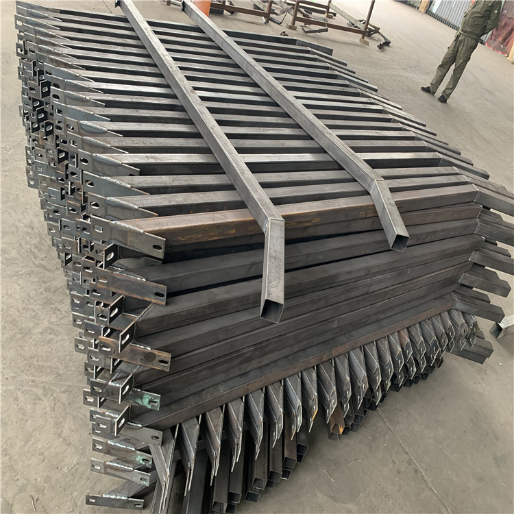 3、立柱采用Q235鋼管,規(guī)格:直徑114圓管,壁厚4mm;立柱頂部直接焊接外徑140mm、厚度6mm法蘭盤方式;預留四只直徑16mm絲孔,與電網(wǎng)支架末端法蘭盤相對應(yīng)。立柱法蘭盤和支架法蘭盤分別整體熱鍍鋅處理。