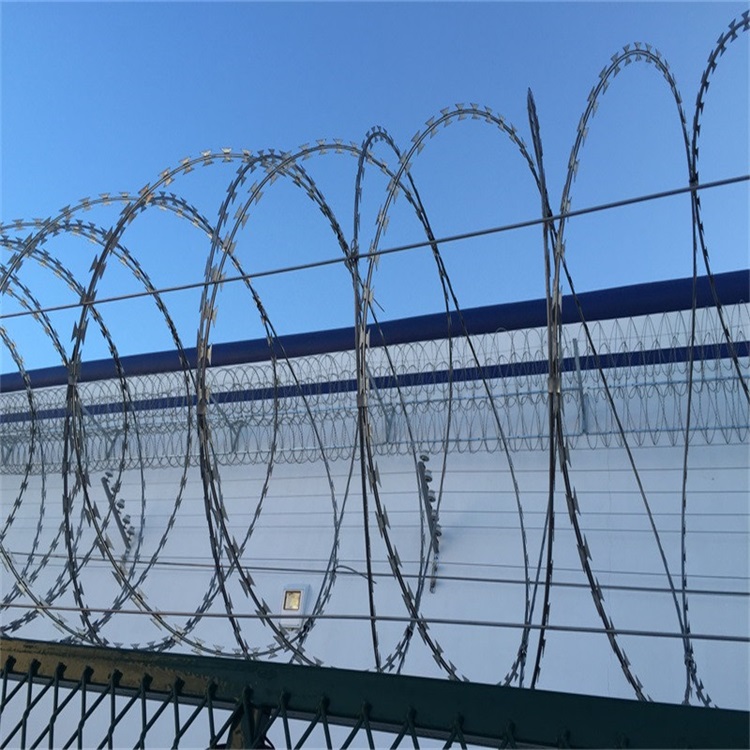 我們平時見到的金屬隔離網(wǎng)頂部都會加裝蛇腹形刀刺網(wǎng),這個設(shè)計主要是在隔離網(wǎng)一層防攀爬效果的基礎(chǔ)上面,再多一道‘安全墻’,這種刀刺網(wǎng)都是利用鋼板沖出刀片來,用專制卡扣固定在一起。兩個圈用卡扣固定,這樣拉伸開才是連貫一圈一圈固定在一起。也可以拉直焊接成網(wǎng)片使用,尺寸:長度和寬度可以根據(jù)客戶需求進(jìn)行制作,一般常見的長度為2-3米,寬度為1.5-2.5米??梢愿鶕?jù)不同的用途搭配立柱合邊框進(jìn)行自由組合。網(wǎng)孔可設(shè)計菱形或者方形,材質(zhì)常見的有不銹鋼、熱鍍鋅等,不同的材質(zhì)可根據(jù)環(huán)境和使用條件選擇。焊接刀片護(hù)欄網(wǎng)作為一種高效的防護(hù)設(shè)施,其產(chǎn)品規(guī)格和結(jié)構(gòu)特點的不同組合可以滿足不同的使用需求,適用于工廠、學(xué)校、軍事基地、機場、大型活動場地等各種需要防護(hù)的場所,是一種重要的安全配置。