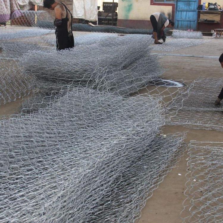 石籠網(wǎng)采用六角擰編而成過程為:原材料選?。ūP條)——冷拔/鍍鋅/包塑——機(jī)器編織——人工剪切、組裝——產(chǎn)品檢驗——包裝運輸