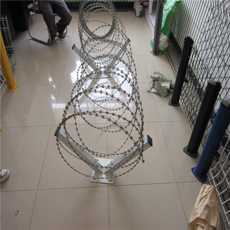 刀片刺繩在監(jiān)獄鋼網(wǎng)墻產(chǎn)品中有著至關(guān)重要的作用,它是具有尖利的刀片,共同的造型,像一條占據(jù)的大蛇,因此又稱刀片刺繩為蛇腹形刀刺網(wǎng),只需不小心碰到就會被尖利的刀片劃傷,手不能握,腳不能攀爬,成為堅決阻撓不合法分子逾越的防護墻,具有很強的恫嚇和阻撓作用,既漂亮又有十分實踐明顯的作用。