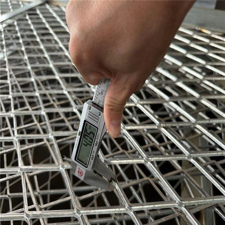 3.鋼板網(wǎng)制作:把成品板經(jīng)過(guò)機(jī)器沖剪拉伸成帶有菱形孔狀的鋼板網(wǎng),厚度、孔徑大小按要求,然后焊接在焊接好的邊框上面。