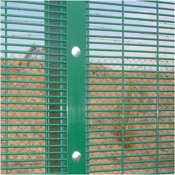 鍍鋅358監(jiān)獄防攀爬網(wǎng)包括;原鍍鋅絲 后鍍鋅 高上鋅量絲不同形式,是358監(jiān)獄防攀爬網(wǎng)中一種常規(guī)、普遍的表面處理方式!一般非洲、中東國家采用這種表面處理的方式比較普遍,還可以采用噴塑、浸塑等工藝,使防爬網(wǎng)不但防爬能力強(qiáng),而且更加美觀。