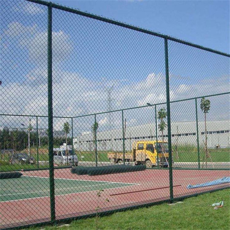 圍網施工工序為:底板固定-網立柱焊接-頂、底橫桿焊接-掛網施工-網門施工、噴漆。焊圍網地板及立柱:測量放線,按設計圖定好網柱及燈柱埋件位置。制作固定件,圍網立柱固定件尺寸為150×150×8,燈柱固定件尺寸 為200×200×10,打膨脹螺絲固定,螺絲長80mm以上。焊接立柱及橫桿。立柱門距為3m,立柱全部焊完后,方可開始焊上、下橫桿, 所有焊接均采電J422焊條,焊縫要求滿焊,焊縫高度及寬度均應大于0.7d。