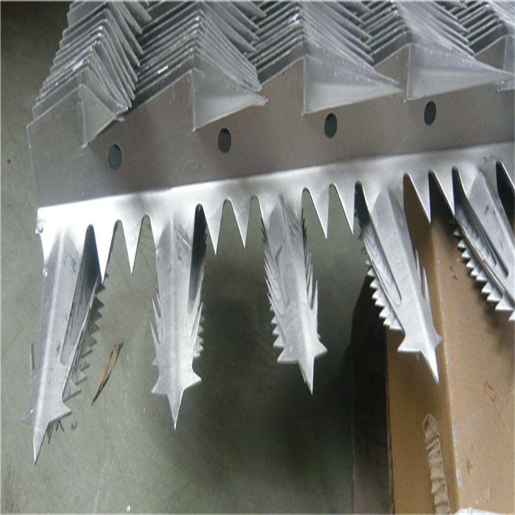 工程案例刀刺網(wǎng)支架,圍墻刀片刺網(wǎng)V型支架采用50*50mm方管做支架,方管上焊有與拉絲連接的L型鐵鉤,底座與圍墻連接采用200*200mm鋼板,大大的增強(qiáng)了支架與墻體的牢固度。V型支架里外均采用熱浸鋅處理,使支架的防腐壽命更長(zhǎng)。支架的安裝應(yīng)分段進(jìn)行:先安裝兩端的支架,然后拉線埋設(shè)中間的立柱??刂浦Ъ芘c中間支架的平面投影在一條直線上,不得出現(xiàn)參差不齊的現(xiàn)象。刀刺網(wǎng)支架在圍墻上的固定方法一般為底盤打膨脹螺絲固定。固定好后,方可進(jìn)行蛇腹形刀刺網(wǎng)安裝。安裝好支架立柱了,先把要安裝刀片刺繩的拉絲給固定上,然后利用拉絲的支撐力來(lái)安裝刀片刺繩,并用專用的卡扣、卡鉗進(jìn)行固定。