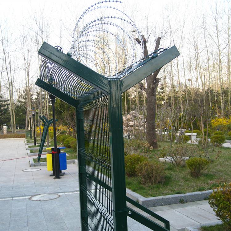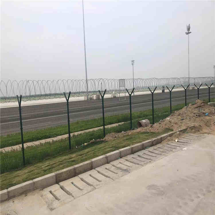 新聞動態(tài)機場防爬圍界網(wǎng) 機場圍界隔離網(wǎng) 機場圍界防護網(wǎng)經(jīng)過編焊而成;網(wǎng)格結構簡練、便于運輸、安裝不受地形起伏限制,特別是對于山地、坡地、多彎地帶適應性極強。機場護欄網(wǎng)的主要特點是網(wǎng)身高大,防攀爬能力強,抗沖擊,表面雙層優(yōu)質防腐處理,可達到10年的超長壽命,一經(jīng)推出,就得到了各大機場的高度認可,機場護欄網(wǎng)是由V型支架立拄,加強型焊接片網(wǎng),安全防盜連接件和熱鍍鋅刀片刺籠組成是強度和安全防御性級別很高的防護安全。注:如果在機場護欄網(wǎng)頂部加裝刀片刺絲、刀片刺繩后又很好的增強了安全防護性能。