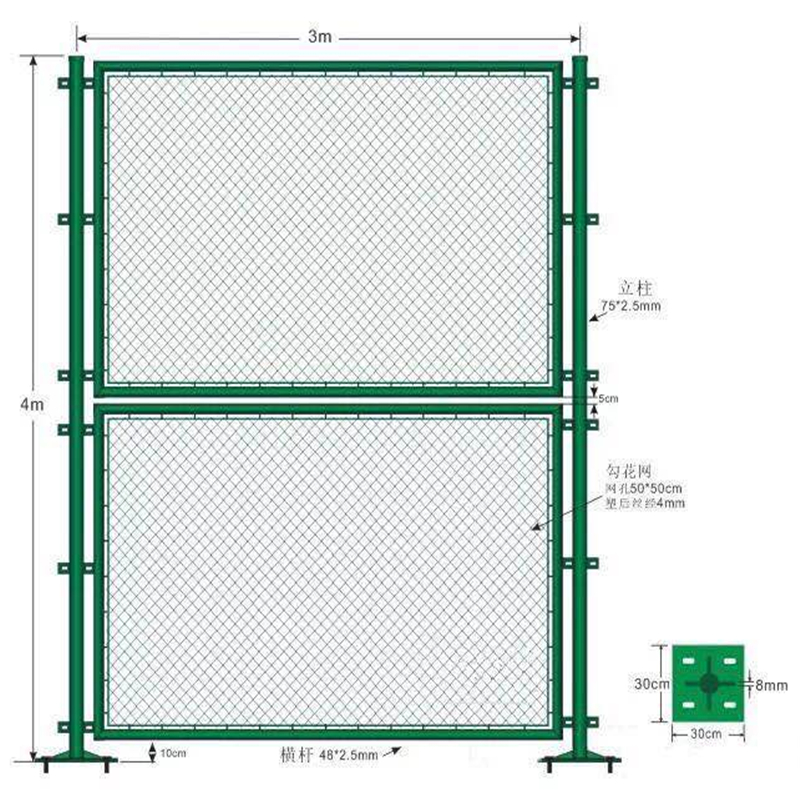 球場(chǎng)圍網(wǎng)立柱的中心距一樣,否則將會(huì)對(duì)不準(zhǔn)安裝不上。