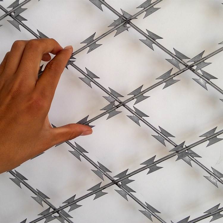 刀片刺網(wǎng)阻隔防護網(wǎng)由銳利尖角鍍鋅鋼板或不銹鋼薄板做刀片,高張力鋼絲做芯線組合而成的阻絕器材。刀刺網(wǎng)焊接網(wǎng)片由刀片型直線刺網(wǎng)交叉焊接成型。刀片刺網(wǎng)的制作工藝并不是非常困難,只要具有特殊的機械和熟練的生產(chǎn)技術(shù)都可以生產(chǎn)出完美的刀片刺網(wǎng)。