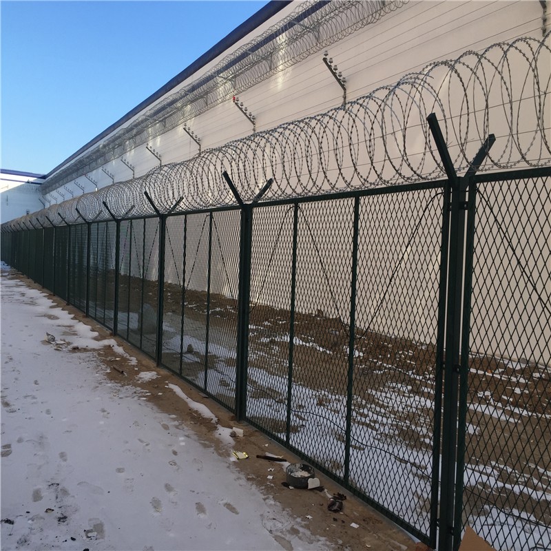 新聞動態(tài)監(jiān)獄圍墻外側(cè)金屬隔離網(wǎng)也叫監(jiān)獄隔離網(wǎng),近幾年全國各地監(jiān)獄都在進(jìn)行改造。很多設(shè)計院工程師詢問我公司監(jiān)獄隔離網(wǎng)的常用規(guī)格尺寸,以及規(guī)格規(guī)范。今天就為大家簡單介紹下監(jiān)獄隔離網(wǎng)常用規(guī)格尺寸以及規(guī)范。監(jiān)獄隔離網(wǎng)原材料主要采用高強(qiáng)度低碳鋼絲焊接成型,上部加Y型固定支架。由焊接鋼網(wǎng)結(jié)合刀片刺網(wǎng)組合而成。