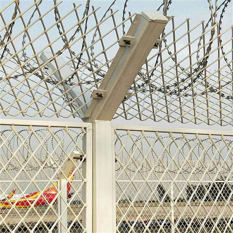 機場護欄網(wǎng)也叫機場圍界,主要用途:機場封閉 、私人地域、軍事重地、 場區(qū)圍網(wǎng)、 開發(fā)區(qū)隔離網(wǎng)使用。