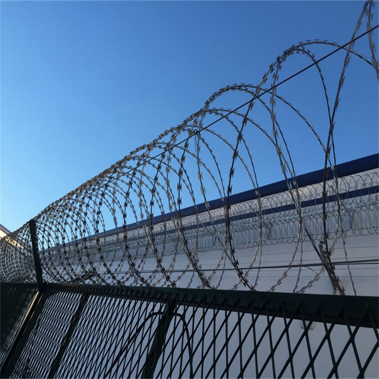 新聞動態(tài)監(jiān)獄隔離網(wǎng)也稱為監(jiān)獄圍欄,常見的監(jiān)獄隔離網(wǎng)樣式是由V型支架加固的焊接網(wǎng),由安全防盜連接件和刀片刺網(wǎng)制成,因此可以達(dá)到優(yōu)良的防護(hù)和隔離效果,隔離網(wǎng)頂部按照要求安裝刀刺網(wǎng),立柱頂部的V型直接兩個側(cè)臂焊接有專用的刺網(wǎng)勾,是每個側(cè)架設(shè)三道熱鍍鋅鋼絲,形成一個V型槽,然后把刀刺網(wǎng)放到上面,再用配套卡扣把鋼絲和刀刺網(wǎng)連接到一起,如果V型架內(nèi)安裝V型網(wǎng)架,安裝就更簡單了,直接把刀刺網(wǎng)連接到V型網(wǎng)上面就可以了。那監(jiān)獄隔離網(wǎng)搭配使用什么材質(zhì)的刀刺網(wǎng)比較好呢?小編通過圖片和文章來給大家介紹。