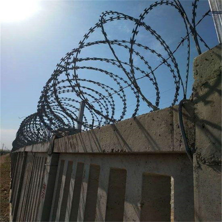 還有就是環(huán)境的差異:如果是南方陰雨多的地方建議選擇不銹鋼刀刺網(wǎng)材質(zhì),或者高鋅材質(zhì)的,北方地區(qū)普通熱浸鋅的就可以,當(dāng)然也要看安裝要求。再就是安裝上的差異:安裝在隔離網(wǎng)頂部的要安裝采購(gòu)標(biāo)準(zhǔn)選材,通常會(huì)有相應(yīng)的配件搭配安裝使用,安裝在圍墻上通常搭配支架來(lái)安裝固定,每3米設(shè)置一個(gè)支架,由刺絲連接卡扣與固定在支架上的縱向拉筋相連接,縱向拉筋與支架的連接采用?2.5mm的冷拔鍍鋅鋼絲繞2圈后擰緊固定,支架底盤用膨脹螺絲固定在圍墻上就可以了。刀片刺繩還可以焊接成網(wǎng)片作為鋼網(wǎng)墻使用,經(jīng)常用于草場(chǎng)邊界、鐵路、高速公路的隔離防護(hù)以及園林公寓,機(jī)關(guān)單位,監(jiān)獄,哨所,邊防等的圈禁防護(hù)。