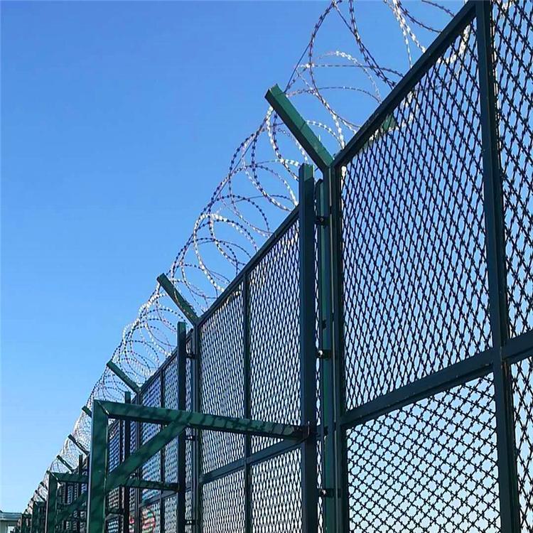 監(jiān)獄防護鋼網墻 監(jiān)獄隔離警戒網是非常重要的監(jiān)區(qū)安全防護設施,是由焊接鋼網加蛇腹形刀刺網組合而成。產品具有結構新穎、堅固緊密、網面平整、網孔均勻、刀鋒銳利、防攀爬、耐腐蝕性強等特點。Y型架上邊架蛇腹型刀刺:由熱鍍鋅鋼板或不銹鋼薄板沖壓出尖利的刀片狀,高張力鍍鋅鋼絲或者不銹鋼絲做芯線組合而成的阻盡器材。刀刺直徑采取50-60厘米,刀型整潔、刀片鋒利、排列均勻致密、連接堅固、防腐才能強,可能達到防攀越、防拆卸更高保險等級。
