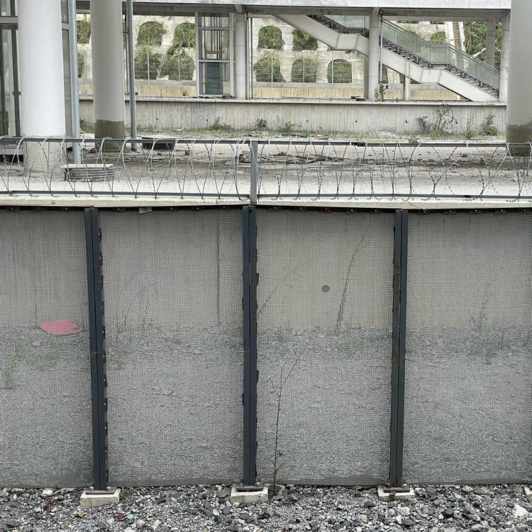 工程案例熱鍍鋅鐵路防爬刺高度為70-120cm,安裝在柵欄上部,倒刺上部30cm向外折角45°;豎向、橫向鋼筋采用Φ12mm鋼筋,頂部焊接特質(zhì)尖刺;豎向鋼筋間距≤10cm;豎向扁鋼采用30*5.0mm鋼板;表面鍍鋅防腐處理,鍍鋅量不少于270g/m2;標(biāo)準(zhǔn)的熱鍍鋅防銹層則可保持8-10年而不必修補(bǔ);鍍層的韌性強(qiáng):鋅層形成一種特別的冶金結(jié)構(gòu),這種結(jié)構(gòu)能承受在運送及使用時受到機(jī)械損傷;可靠性好:鍍鋅層與鋼材間是冶金結(jié)合,成為鋼表面的一部份,因此鍍層的持久性較為可靠;全面性防腐:鍍件的每一部分都能鍍上鋅,即使在凹陷處、尖角及隱藏處都能全面地受到保護(hù);現(xiàn)場安裝防爬刺與防護(hù)柵欄矩管之間采用Φ12mm鋼筋連接焊接固定。