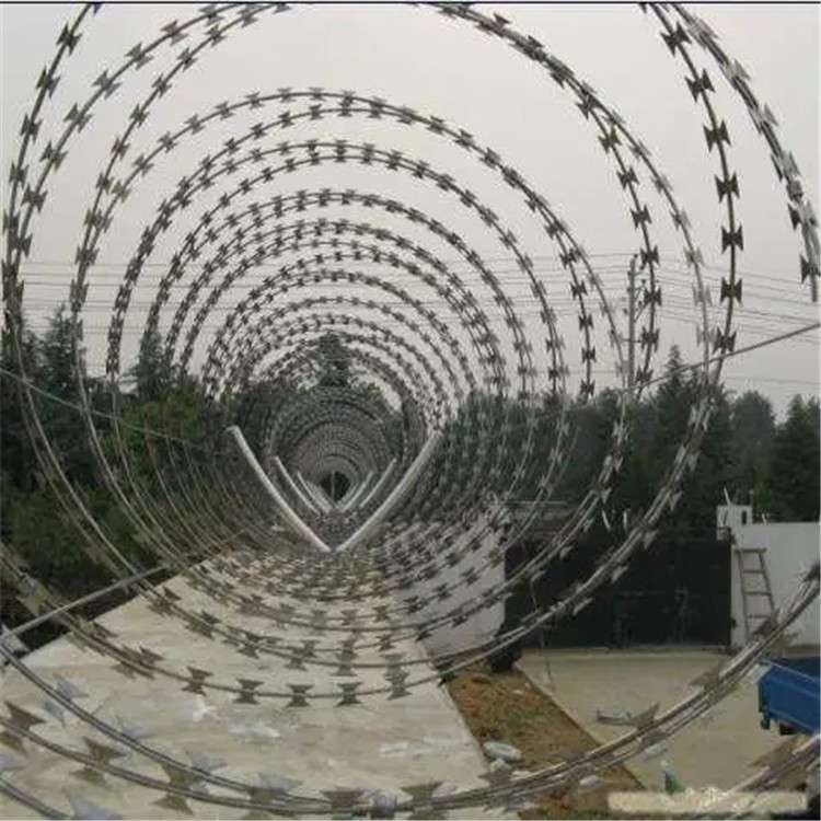通常刀刺網(wǎng)支架焊有與拉絲連接的L型鐵鉤,底座與圍墻連接采用200*200mm鋼板,大大的增強了支架與墻體的牢固度。通常V型支架里外均采用熱浸鋅處理,使支架的防腐效果更好。也可用304不銹鋼材質(zhì),這樣使用壽命更長。