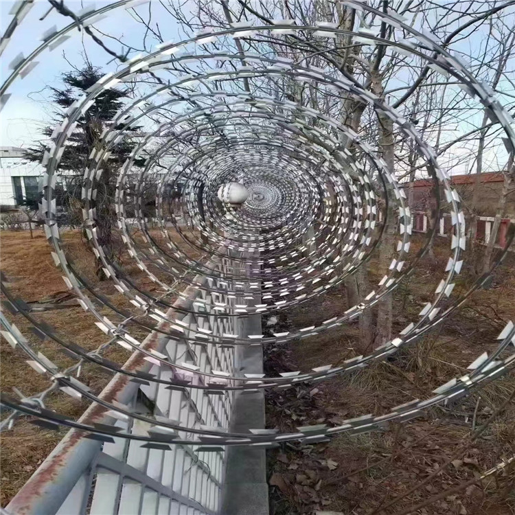 新聞動態(tài)為了增強(qiáng)安全防御,應(yīng)生了刀片刺繩這種產(chǎn)品,常用的就是BTO-22刀刺網(wǎng),材質(zhì):熱浸鋅和不銹鋼,型號:BTO-22,芯線:常用2.5mm,厚度:0.5mm,刀片長度:22mm*15mm,刀片間距:34mm。直徑300-1000mm,常用的是500mm的。如果是陰雨多的地方建議選擇不銹鋼刀刺網(wǎng)材質(zhì),其他地方熱浸鋅的就可以。特殊場地,如監(jiān)獄,機(jī)場等重要防護(hù)使用,就要選擇不銹鋼材質(zhì),而且必須是達(dá)到標(biāo)準(zhǔn)要求的,想要達(dá)到國標(biāo)要求的304不銹鋼刀刺網(wǎng)它的芯線,必須全部采用304材質(zhì),使用年限大大提高了,價位也就比市面上銷售的刀刺網(wǎng)高出很多。也有的地方使用201材料的,但是性能方面略差相對比較便宜,201含鎳低相比性能就不如304的蛇腹形刀刺網(wǎng),不銹鋼材質(zhì)刀片刺網(wǎng)用途世界各國已將刀片刺網(wǎng)廣泛用于軍事重地、監(jiān)獄、政府機(jī)關(guān)、銀行,以及生活小區(qū)圍墻、私人住宅、別墅的圍墻、門窗、高速公路、鐵路護(hù)欄以及邊境線等用來防護(hù)保安。