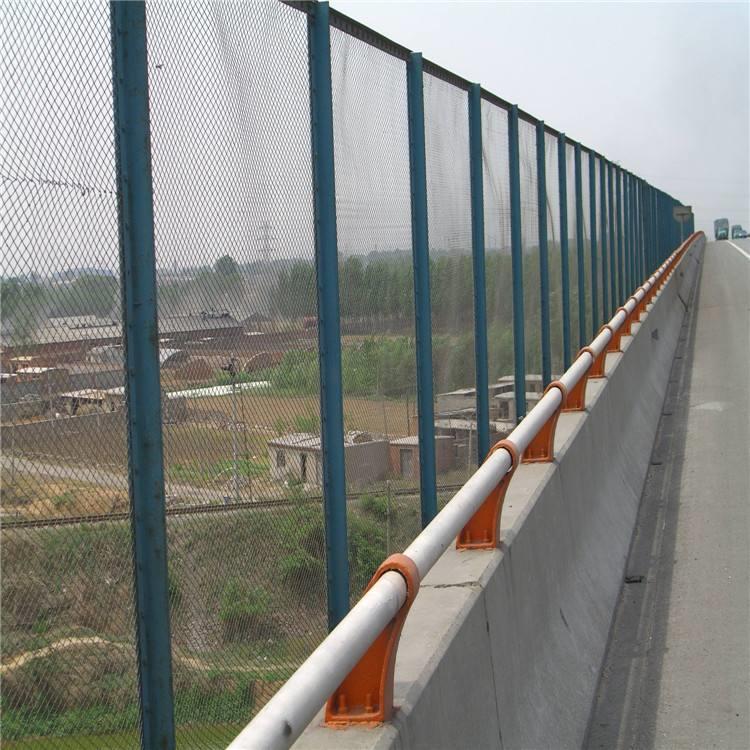 鐵路專用防拋網(wǎng)按照 標(biāo)準(zhǔn)使用3mm熱鍍鋅絲編制成正方形孔或者菱形孔,網(wǎng)孔5*5mm,箱梁橋防落網(wǎng)間距2000mm,高度2500mm,上下橫梁采用50*32*4mm角鋼各一根,中部豎撐使用50*4mm扁鐵固定,立柱規(guī)格為100*63*4.5mm工字鋼焊接160*200*12mm鋼板法蘭,法蘭孔位對應(yīng)已經(jīng)固定好的預(yù)埋螺栓緊固。金屬防拋網(wǎng)片、立柱及其他緊固件要求熱鍍鋅后靜電噴涂成墨綠色或灰色,顏色亮麗、線性美觀、整齊劃一。